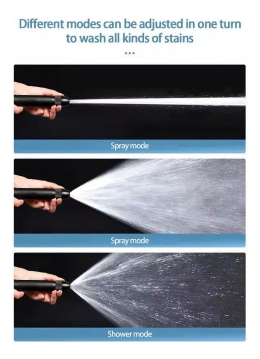 Con lo que puedes ajustar la presión para lograr mucha más potencia al chorro de agua, logrando alcanzar zonas difíciles que con una manguera regular.