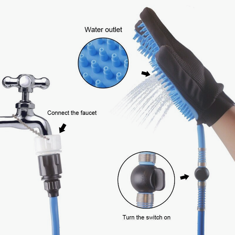 Evita todo este proceso con este GUANTE CON MANGUERA PARA MASCOTAS, te facilitará los momentos de limpieza de tu mascota y ahorrarás agua de una manera efectiva. Se adapta a tu mano perfectamente gracias a su diseño ergonómico. Es cómodo para ti y relajante para tus peluditos.