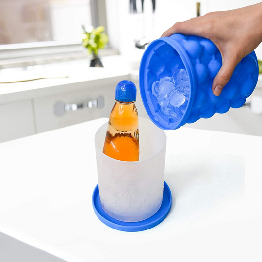 ¡Simplemente llene y enfríe! ¡Llene la cámara exterior con agua, levante el cilindro interno y exprima los cubos de hielo formados en el recipiente y listo para usar!